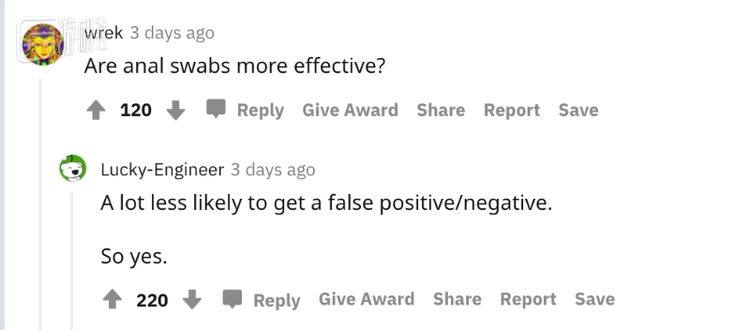在Reddit上,尽管大部分人都知道“肛拭子“是一种更有效,更安全的方式。