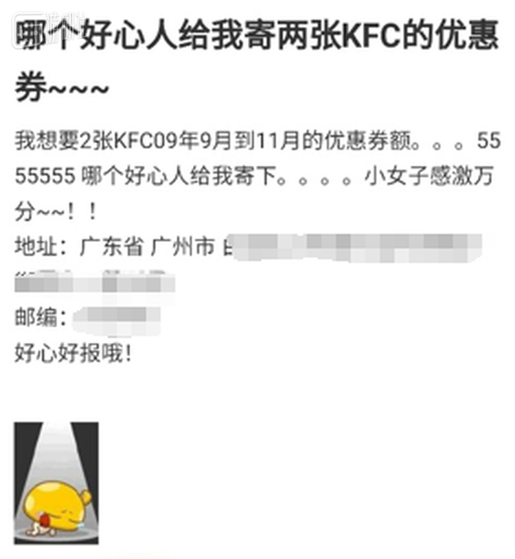 没办法,说是望梅止渴也好,爱屋及乌也罢,在彼时,优惠券的地位就是如此崇高而神圣,为了两张优惠券,牺牲自己的隐私,暴露自家具体地址,对有的人来说可能根本不算什么。