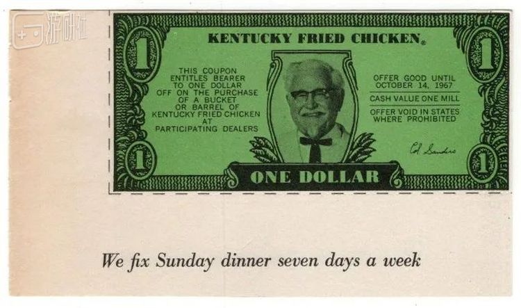 再往后,像比较会整活的肯德基,就曾在1967年推出1美元样式的优惠券。