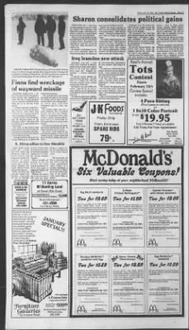 具体到肯德基、麦当劳,两者孰先孰后,究竟是哪一年开始发行优惠券已经难以考证,不过可以确定的是,他们同样很早就开始通过报纸发放优惠券。