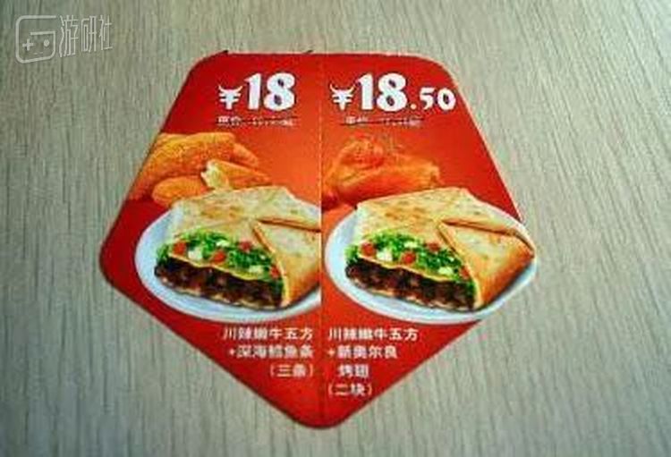 但优惠券的样式又不完全是千篇一律的。比如当年火爆一时的嫩牛五方,KFC为了针对特定产品做宣传,就曾推出过五角形可折叠的专用优惠券。