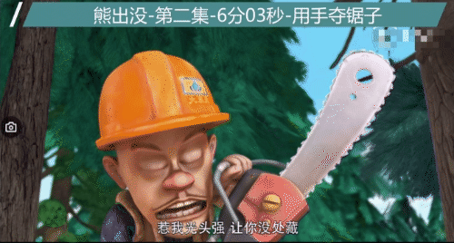例如熊从光头强手中夺走电锯,就显然有让小孩模仿的危险(暂且不考虑孩子为什么能拿到电锯):