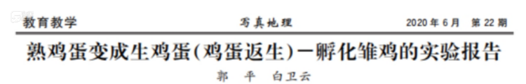 如果说近年有什么对业界造成巨大影响的论文,那《熟鸡蛋变成生鸡蛋(鸡蛋返生)-孵化雏鸡的实验报告》很可能将成为人们最难以忘怀的一篇。