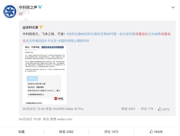 一向严肃的中科院官方微博甚至发了个“呵”来回应此事。