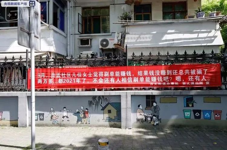 反诈骗宣传的相当一部分比重放在了条幅展示上,这是一门老手艺,也是日常生活中最常见的广告手段。