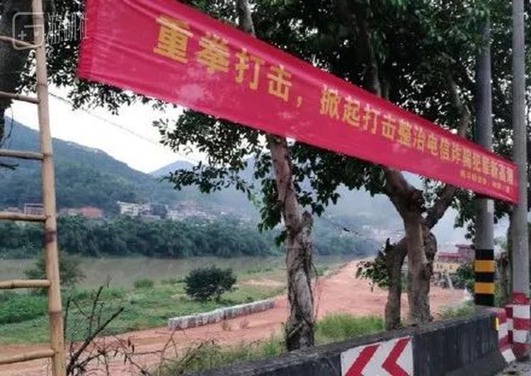 普通的反诈骗条幅与传统的法制宣传条幅大同小异,不是科普具体法律法规,就是对群众进行说教。言辞严肃一点的,可以打上“重拳出击”四个大字: