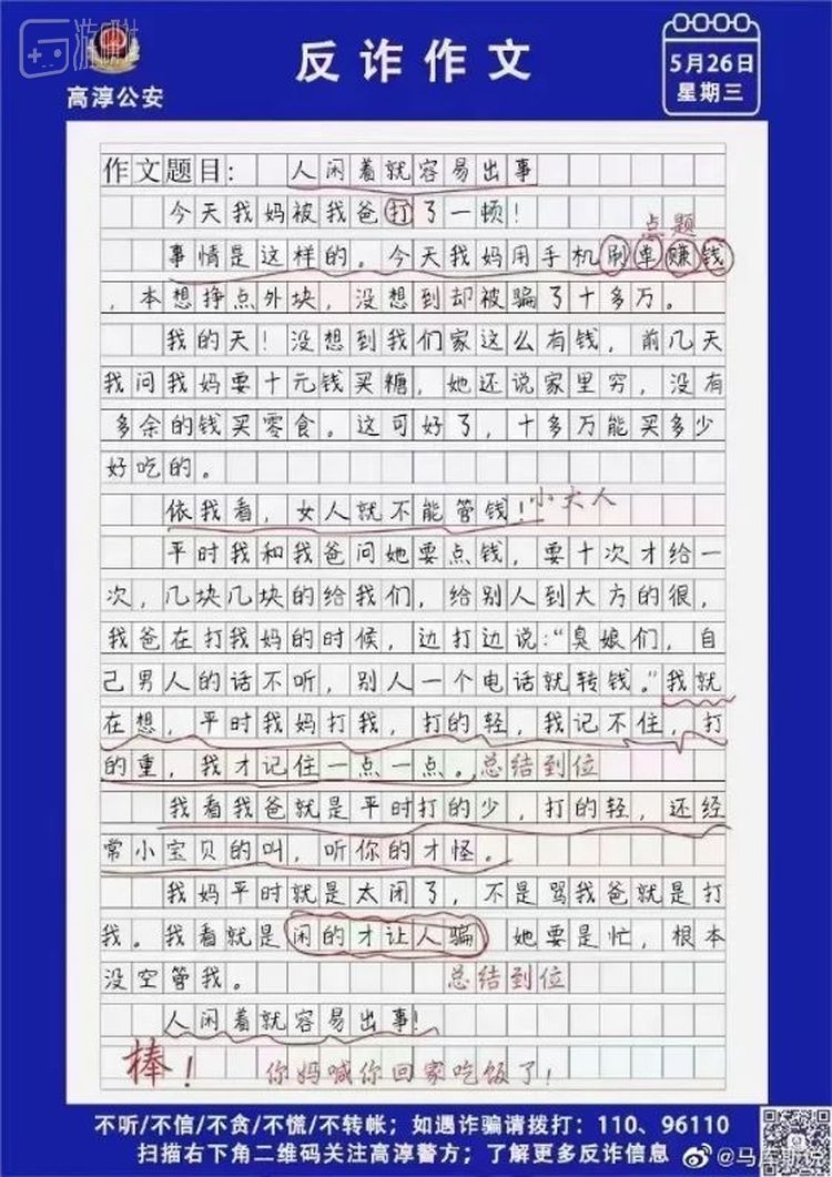 如何把握住其中的度,用更易于接受的方式培养人民群众的反诈骗意识,目前全国各地都在进行各式各样的尝试。这项工作离“完成”可能还差得远,但所幸大方向是朝着好的那一面去的——举个例子,半个月前,我社附近轰轰烈烈的反诈骗宣传进行这么久,终于等到一个没有被骗到钱的身边案例。