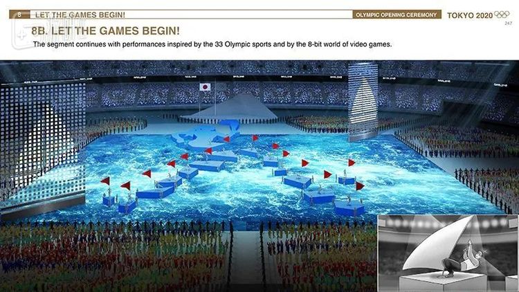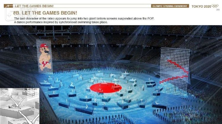 MIKIKO团队临时受命,在很短的时间内,设计了以“NEO Tokyo”为主题的开幕式,包含大友克洋和任天堂的元素: