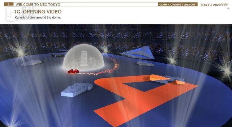 开幕式由《AKIRA》主人公的红色摩托车,在新国立竞技场奔驰,并伴着倒计时拉开帷幕。