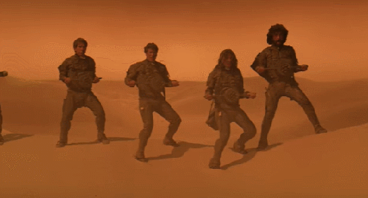军人们冒着枪林弹雨中有如古惑仔一般奔跑对砍,这一幕也成为了2021版《沙丘》电影最受诟病的场景之一