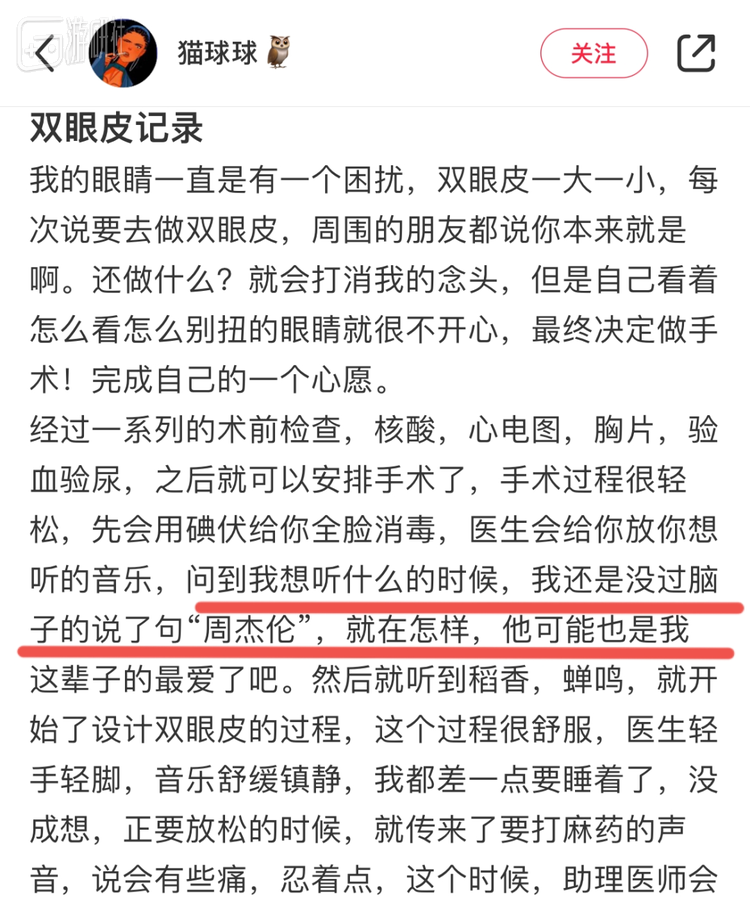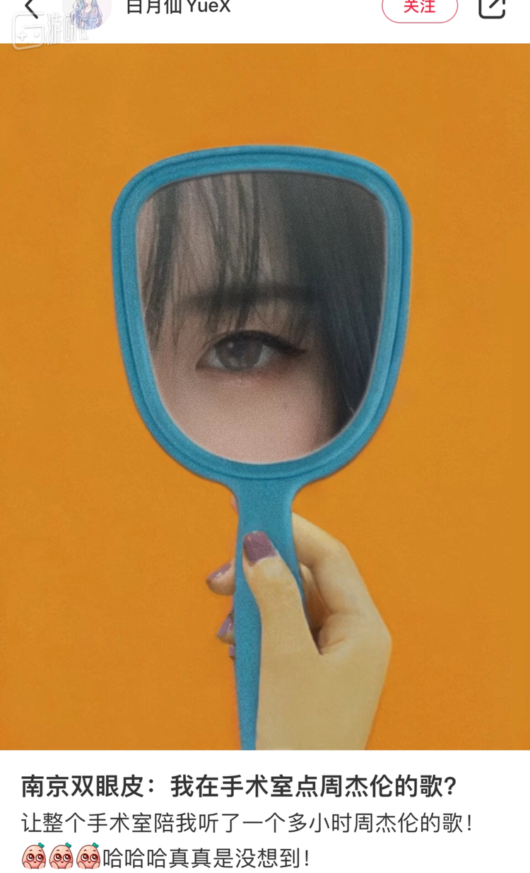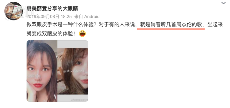以至于有的双眼皮手术宣传已经变成了“躺着听周杰伦,坐起来变双眼皮”。