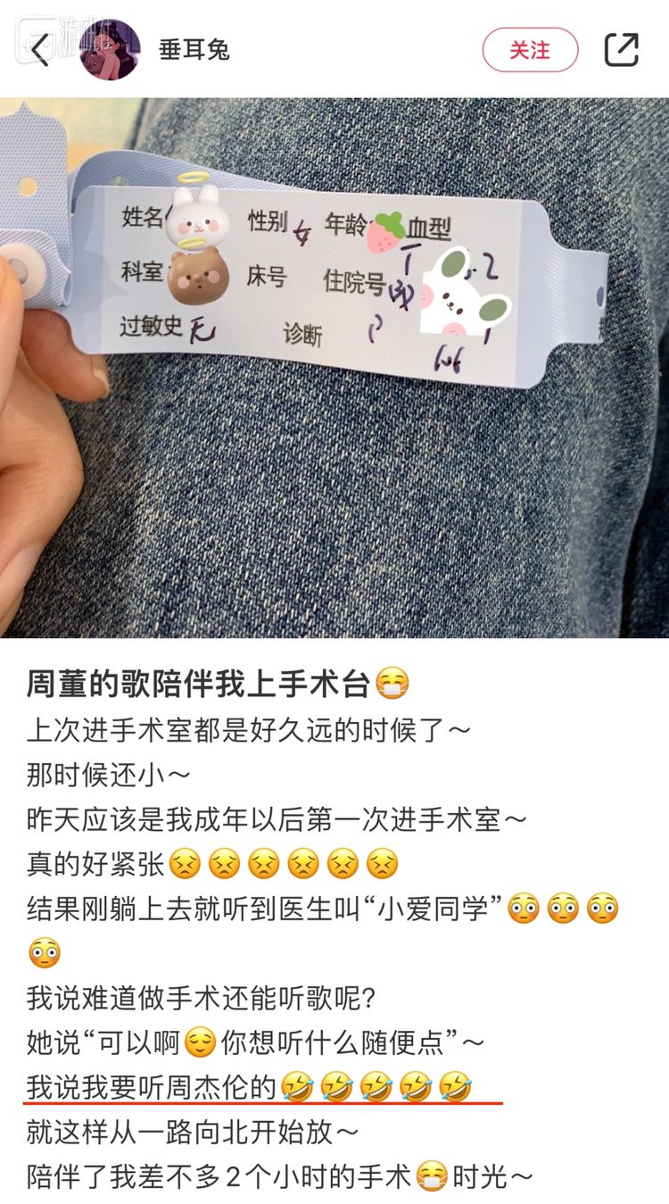 不少发现患者点播周杰伦的医生,也对此感到欣慰。无论你在手术室里是躺着的还是站着的,大家都想来一首《牛仔很忙》。