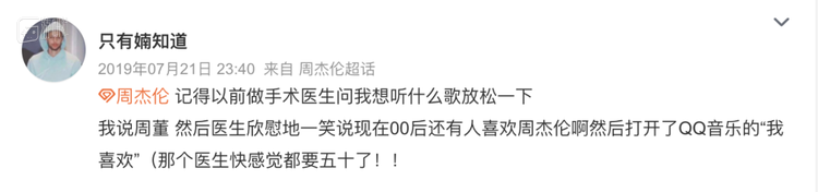 直到现在,这些听着周杰伦的孩子已经长大,他们的歌单变得五花八门,平时听的歌隔几天就换上一茬。或许因为渴望更好,或许因为无奈,这些人也到了需要躺上手术台的时候。