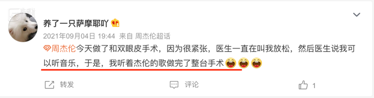 在小型局部手术中,患者若没有手术经验,很可能“自己吓自己”导致血压升高,配合度降低,影响手术效果。而除去药物介入,最好的方法恐怕就是周杰伦了。