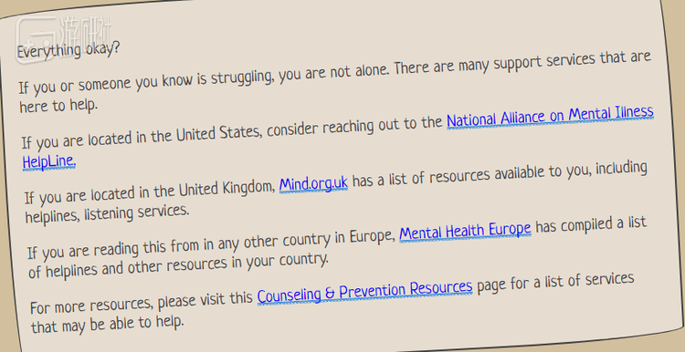 点击这个按钮,就会出现美国、英国及欧洲几个心理健康机构的网站链接(因为使用英语的网友最多),通过这些链接可以获得具体的心理求助方式。