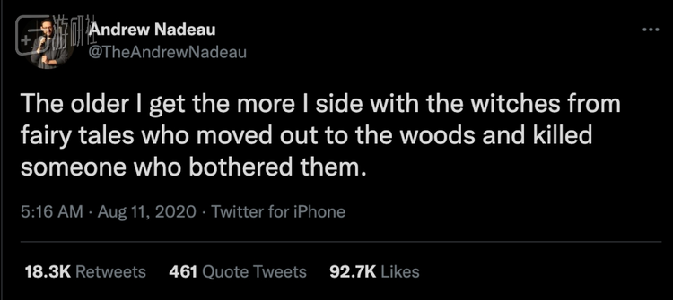 类似于此的现象,在互联网上逐渐增多。一位脱口秀演员曾经发一个关于童话的吐槽: