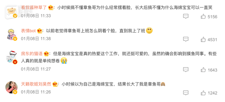 大家对此抱有近乎一致的态度:感觉长大了以后,就开始能理解章鱼哥了。
