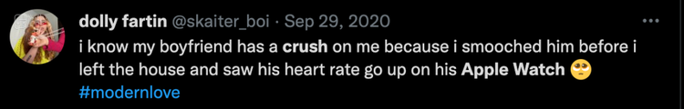 当然,这不是智能手表最值得赞颂的地方——它在当代最受欢迎的功能,恐怕是“检测真爱”。