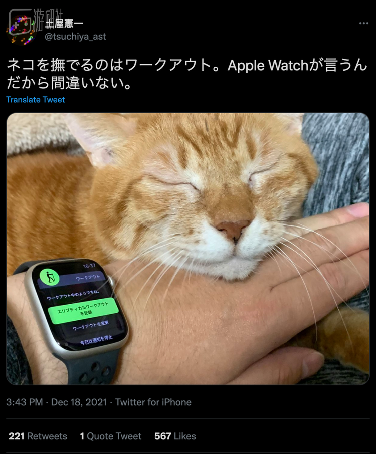 以目前最受欢迎的Apple Watch为例。它时常会识别出一些莫名其妙的运动,比如有位博主在撸猫正起劲儿的时候被提示“您正在运动”。