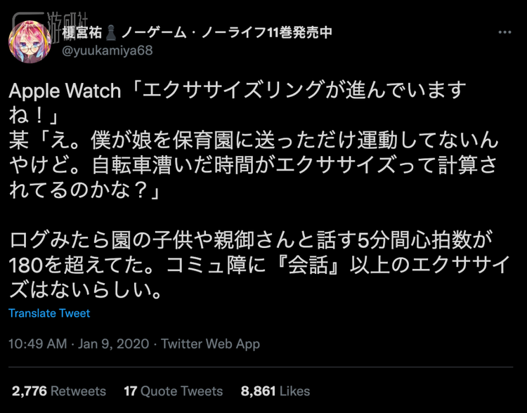 推特上的另一位用户也因智能手表的心率记录功能而更“全面”地了解了自己: