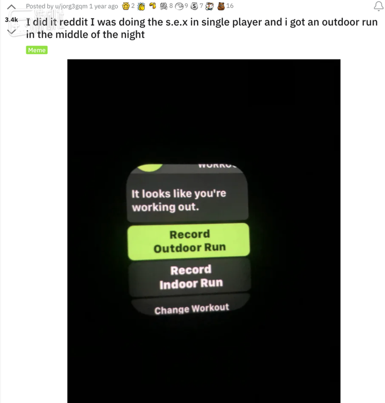 有不少单身小伙都经历了这种事:当他正在肆无忌惮地火热摩擦,手表提示的“您在夜跑”扰乱了一切性质。