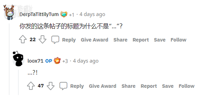 loox71也并非只是一台无情的复读机,当有人指出其标题中的疏忽时,跟在三个点后面的“?”与“!”很自然地流露出这位律法大师的失态与尴尬。