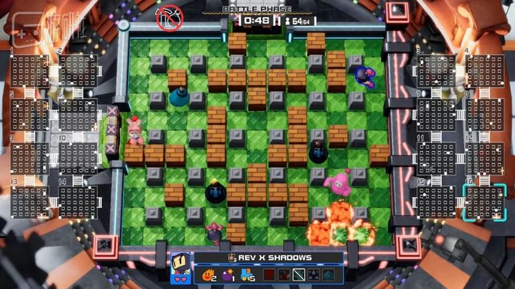 《超级炸弹人 R Online》是一款在2021年发售的炸弹人游戏,它的游戏玩法如名字所见:让64名玩家在同一局游戏的16张地图上同时对战,如果在同屏玩家中获胜,则能够跑到其他地图继续战斗,直到整场游戏只剩下最后一位玩家为止,简单来讲,就是炸弹人版本的大逃杀。
