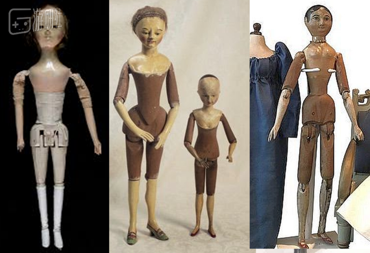 时间飞跃到近代17世纪,伴随生产技术的逐步提高,活动人偶的关节铰接方式逐渐复杂,灵活性增强。纸浆,木浆,碎布 ,锯木屑、皮革等等也都用来制作人偶,人偶的成本逐渐降低,它从贵族阶层的玩物普及到了平民阶层,成为艺术家的模特选择之一。