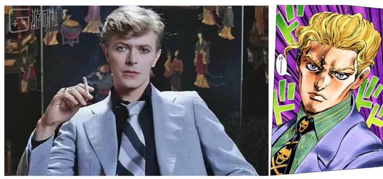 吉良吉影的形象极大概率借鉴自英国摇滚歌手大卫·鲍伊(David Bowie),蓬松的金发搭配细眉深眸,白皙的皮肤和刀削般的脸庞,让人很难不被他精致的外貌一眼打动。