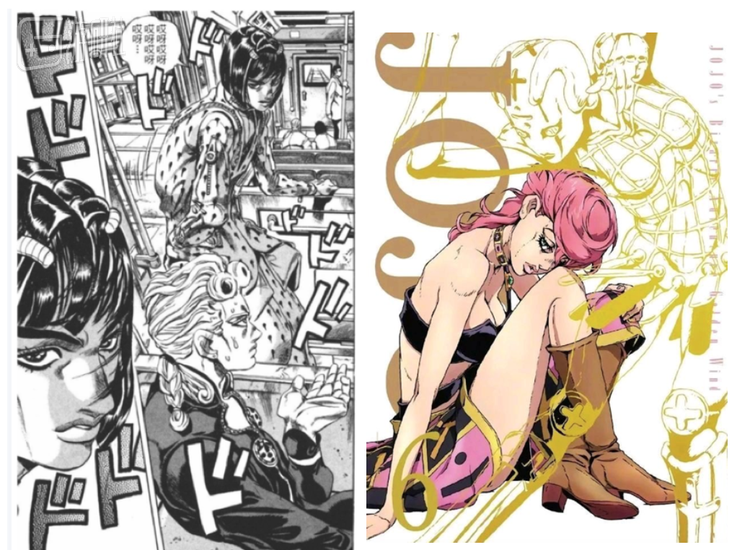 「无论新风格有多么前卫,无论那些风格宣言有多么雄心勃勃,每个人也都明白:时尚总会再次发生改变。它们有时是从以往风格演化出来的,有时则是针对那些风格的一种激进的反叛。」曾专修设计的荒木也深谙此理,于是他令笔下的人物成为一种自觉的时尚:高饱和的奇妙色彩、古典与摇滚的碰撞、赤裸表达情感的率性和敢想敢做的决心,以及世代伙伴之间的羁绊与纠葛,《JOJO》的时尚无处不在。