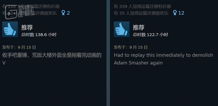 但只要看一眼近期的玩家评价,就不难感受到这次的改编动画所带来的宣传效应——来自不同国家使用不同语言的人们一同高喊着“亚当重锤必须死!”还有一些玩家在曾经的游戏评测下补写了大段的动画观后感,然后将当初的差评改作了好评。
