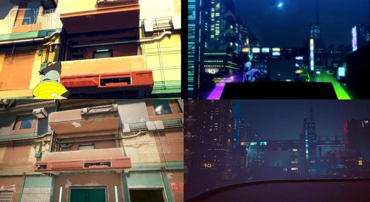 扳机社在动画中绘制的绝大部分场景都来自于游戏中的实景,玩家能在动画中见到许多熟悉的场景和NPC角色,同样也能在游戏中进行“圣地巡礼”,找到动画主角们的住处,它们有的就像大卫和V的家一样直白对应,有的则费些心思小心留意才能注意到。